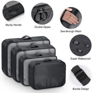 🎈【PERFECT DESIGN】:Mesh top for easy identification of contents, keep your clothes clean and breathable while protecting privacy, fixed buckles keep your clothes clean and tidy. Travel packing cubes helping you to classify your belongings and keeping them from getting lost.