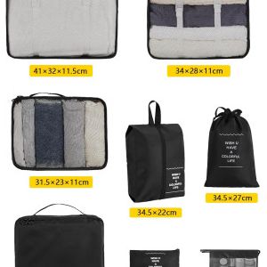 Necomi 8 Set Packing Cubes for Suitcases, Travel Luggage Organizer , Travel Packing Kit with Clothes Storage Bag & Shoes Bag & Toiletry Bag & Underwear Bag(Black