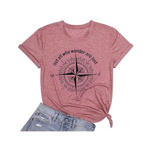 ♚Product Features: Compass graphic design, not all who wander are lost shirt, girls of all shapes can wear, interesting letter pattern short sleeve T-shirt, travel tees for women, compass shirt, short sleeve, loose casual style.